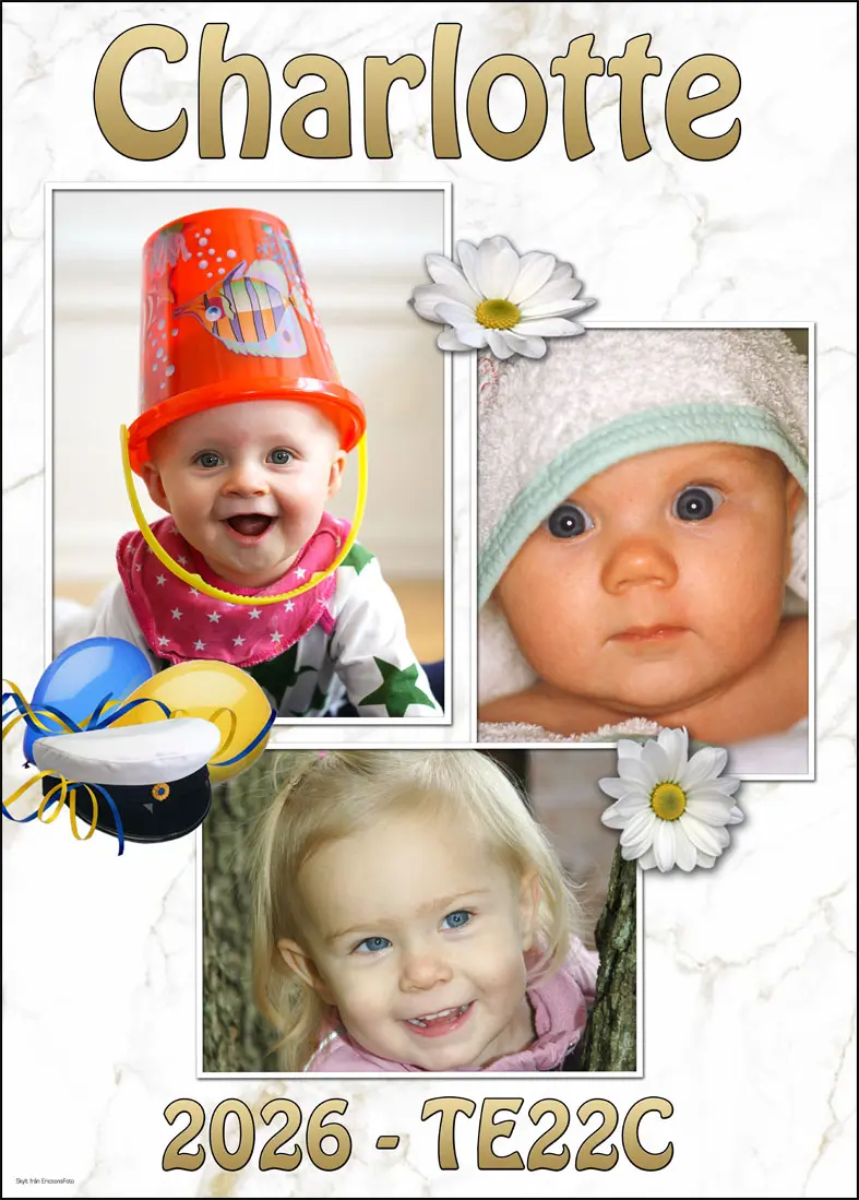 Denna studentskylt har plats för 3st olika bilder o är komplett med studentmössa o blommor på